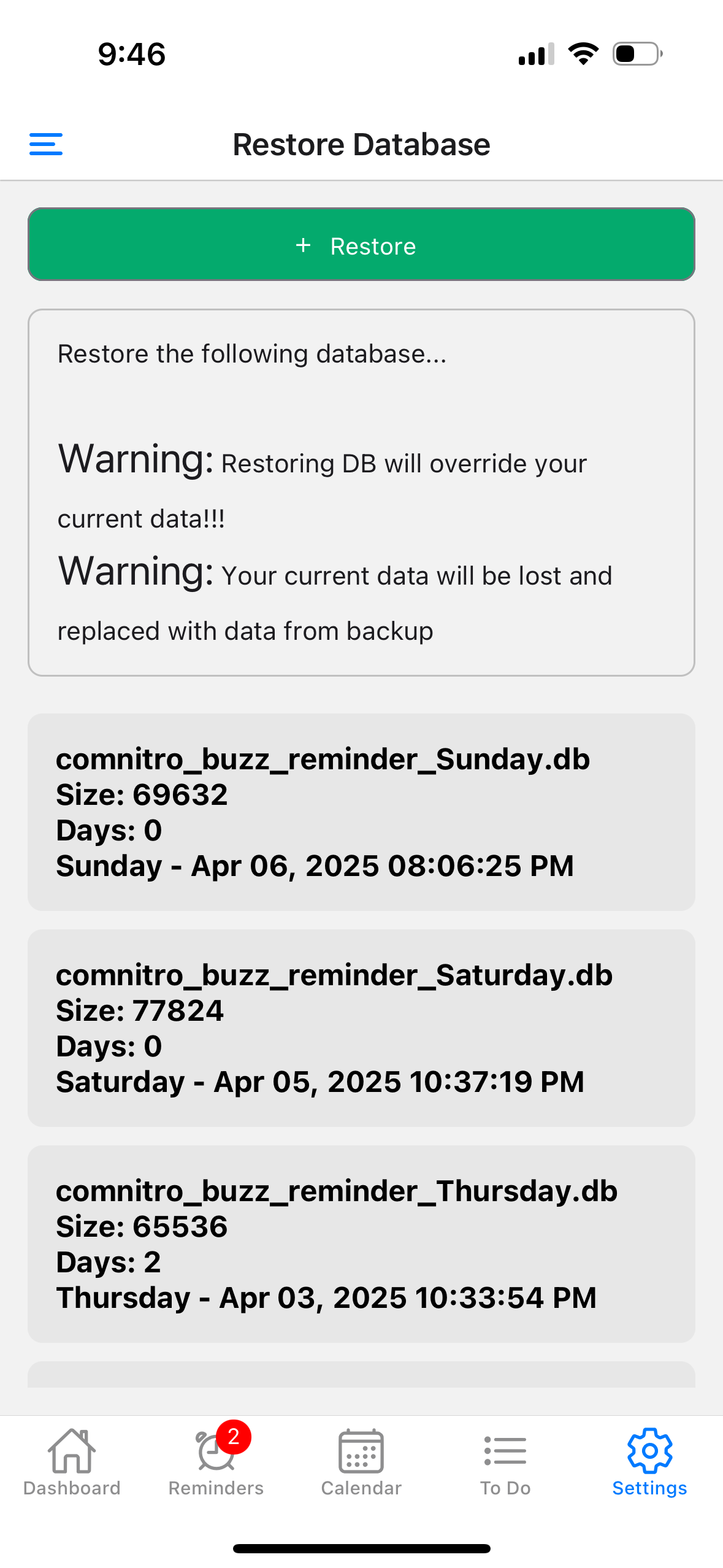 Restore DB from Backup
