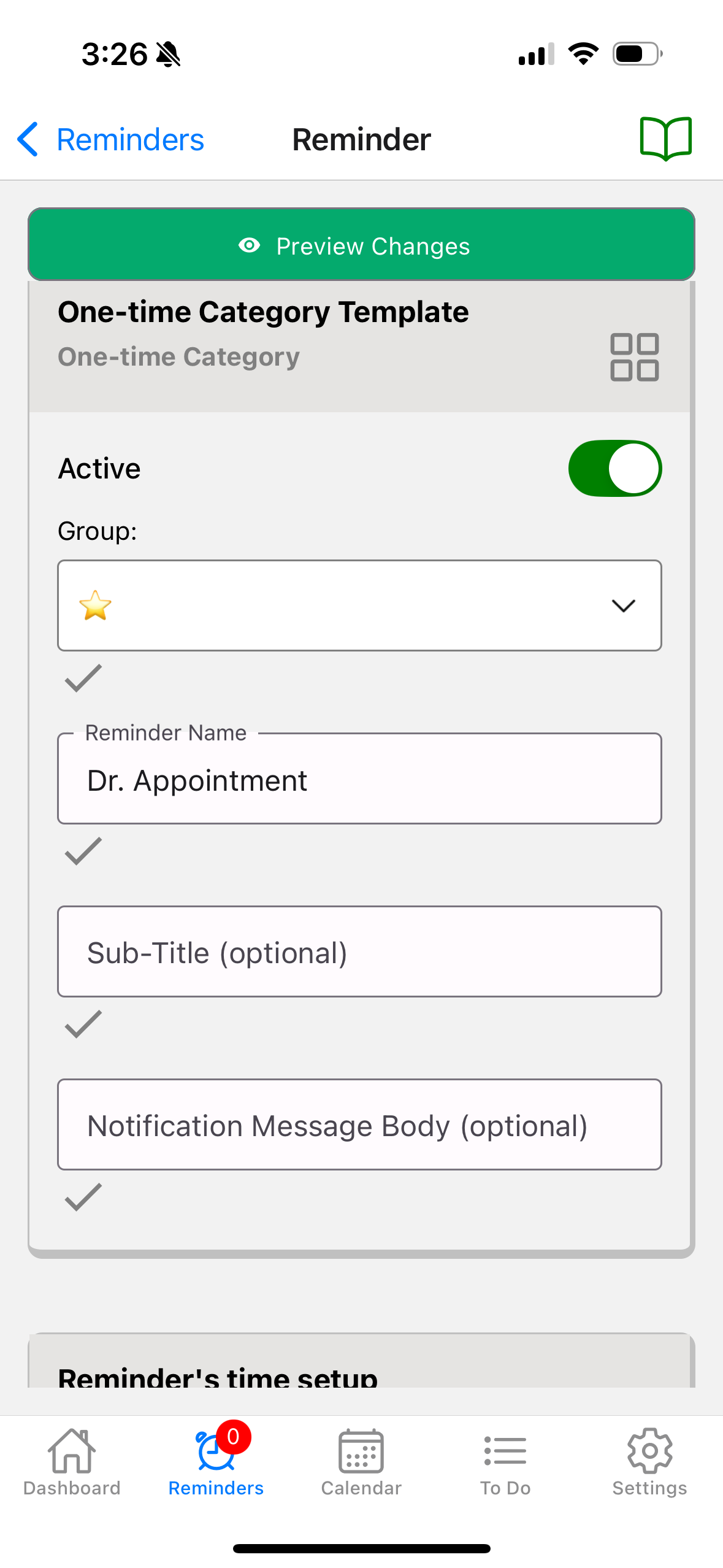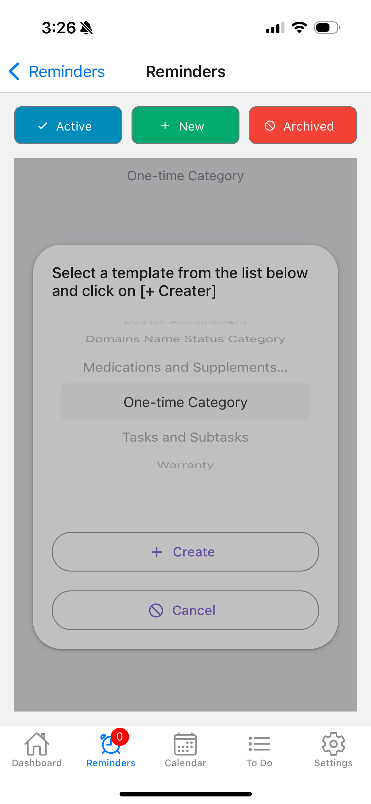 Select One-time Category (or template), or whatever name was given in the /Settings/Template tab.