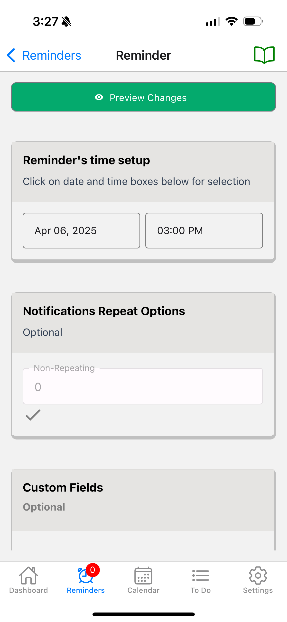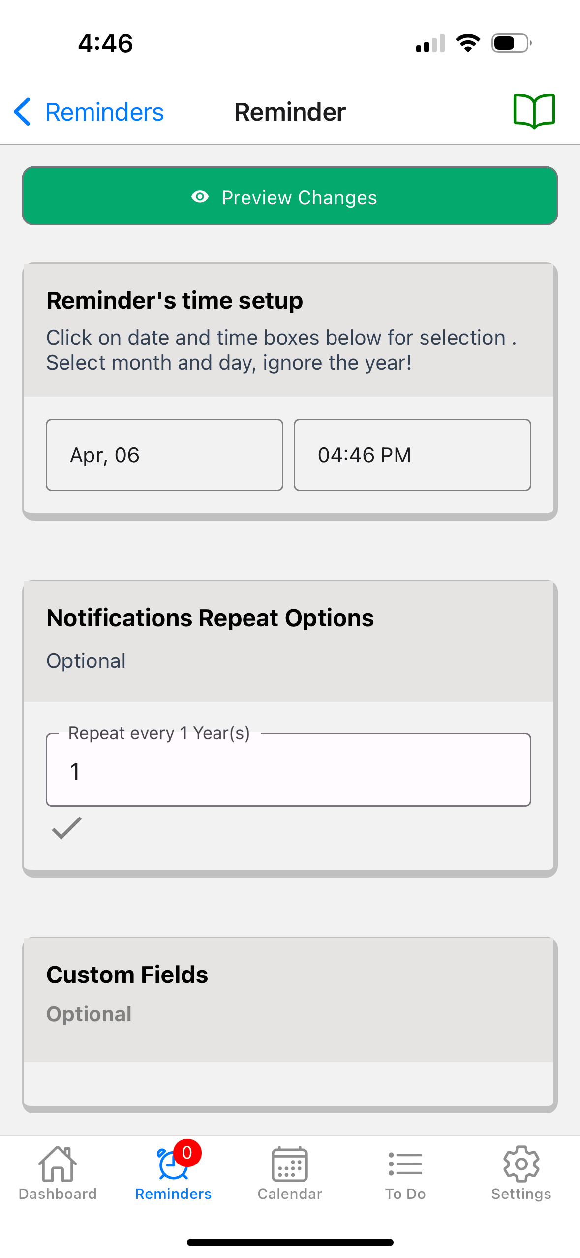 Select Date and Time by touching the date and time fields. Click Preview Changes when done, then follow insturctions.