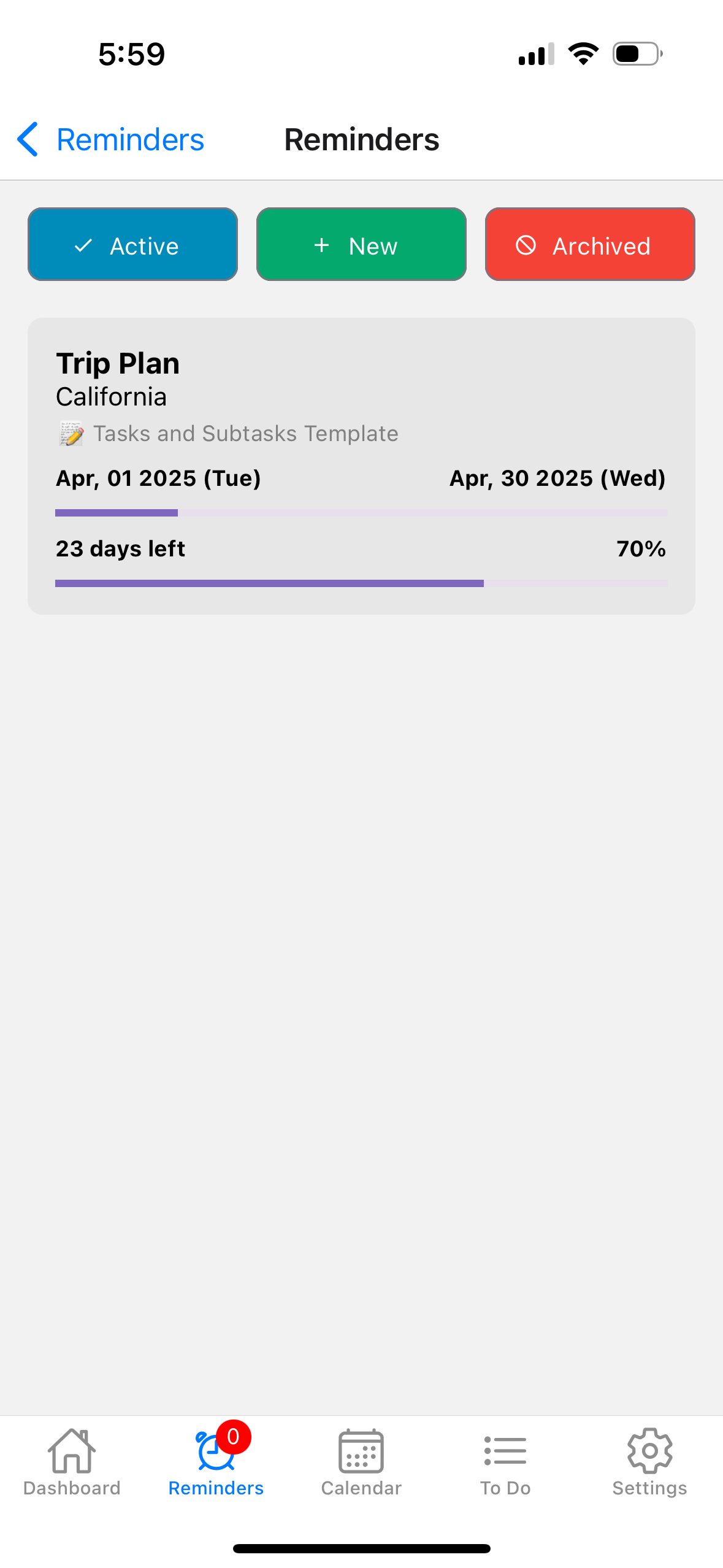 You can create tasks/subtasks reminder. You can check all subtasks you finish and it will show you a very clean reminder w/status.
